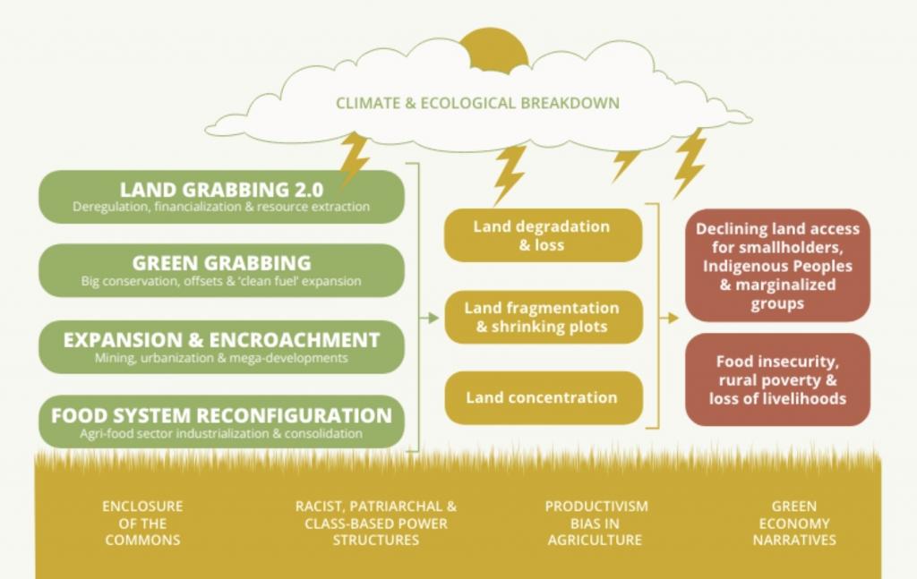- Build integrated land, environmental, and food systems governance to prevent green grabs by prioritizing the right to land in climate governance.