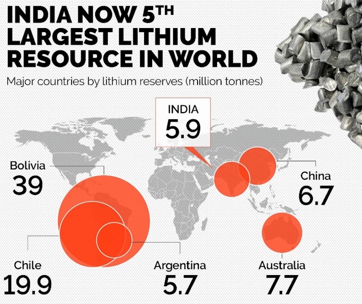 - The Geological Survey of India is actively exploring Lithium reserves within India.