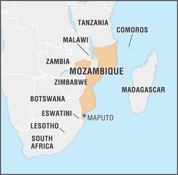 - सीमावर्ती देश: तंजानिया, मलावी, जाम्बिया, जिम्बाब्वे, दक्षिण अफ्रीका, इस्वातिनी।