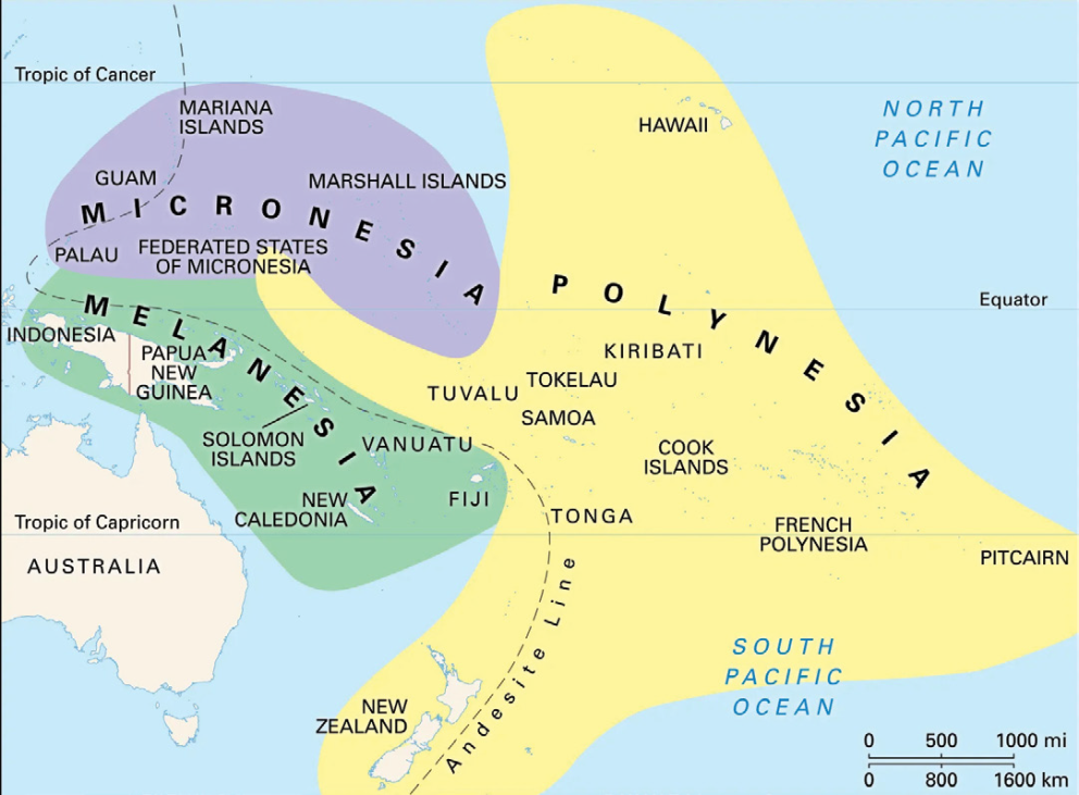 - इस समूह में शामिल 14 प्रशांत द्वीप राष्ट्र तीन प्रमुख द्वीप समूहों का हिस्सा हैं: मेलानेशिया, माइक्रोनेशिया और पोलिनेशिया।