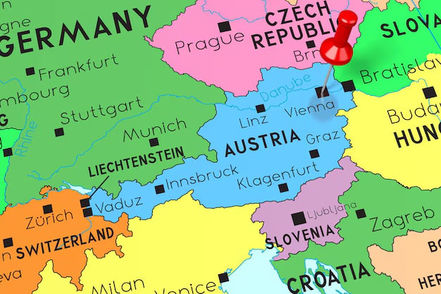 - स्थान: ऑस्ट्रिया दक्षिण-मध्य यूरोप में एक पहाड़ी लैंडलॉक देश है।