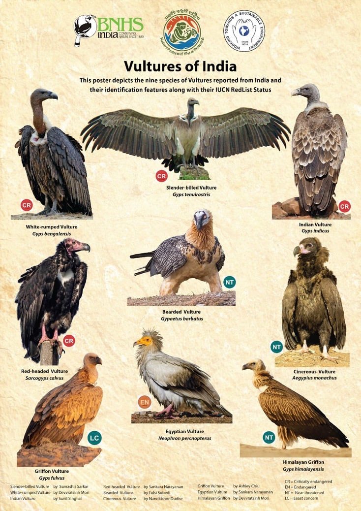 - खतरा: भारत में गिद्धों को मानव गतिविधियों के कारण प्राकृतिक आवासों की हानि, भोजन की कमी, डाइक्लोफेनाक दवा के संपर्क में आने और बिजली के झटके जैसे खतरों का सामना करना पड़ता है।