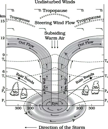- उष्णकटिबंधीय महासागरों पर उत्पन्न होने वाले तेजी से घूमने वाले तूफान।