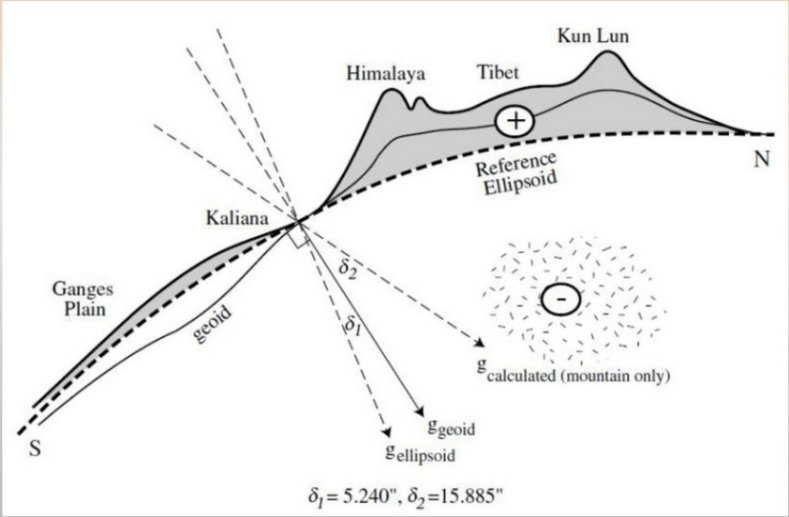 - In the in geodetic surveys of Pierre Bouguer in Andes and Sir George Everest in the Himalayas, gravitational anomalies were found.