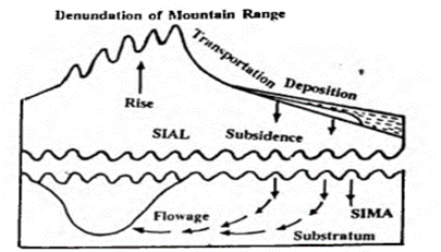 - A newly formed mountain due to tectonic activities is subjected to denudation. Eroded sediments are deposited in the oceanic areas. Hence, there is continuous increase of weight of sediments on the seafloor.