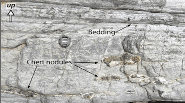 - Non-fossiliferous bedded cherts contain no visible skeletal remains. Most are probably siliceous oozes so extensively altered that all fossils have been destroyed.