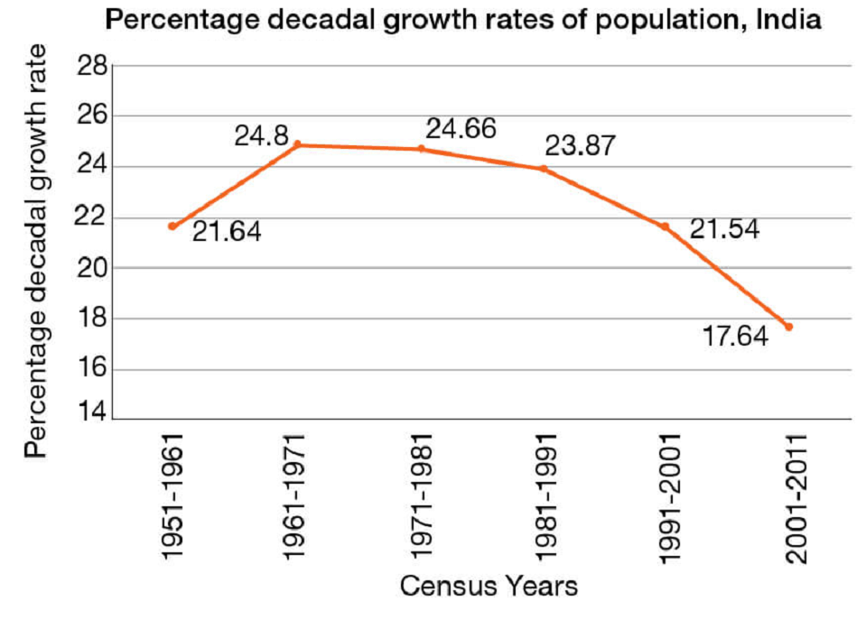 - A downward trend of crude birth rate is held responsible for such a population growth.