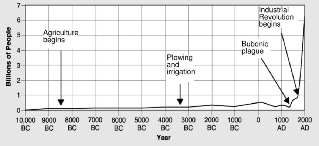 - The population grew very slowly over this long time from 10,000 BCE to 1700 (by 0.04% annually).