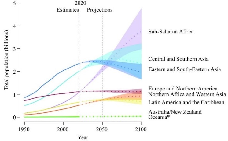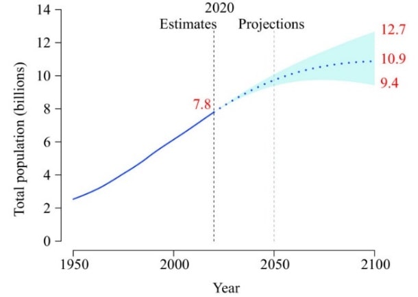 - The UN projected population to keep growing, and estimates have put the total population at 8.6 billion by mid-2030, 9.8 billion by mid-2050 and 11.2 billion by 2100.