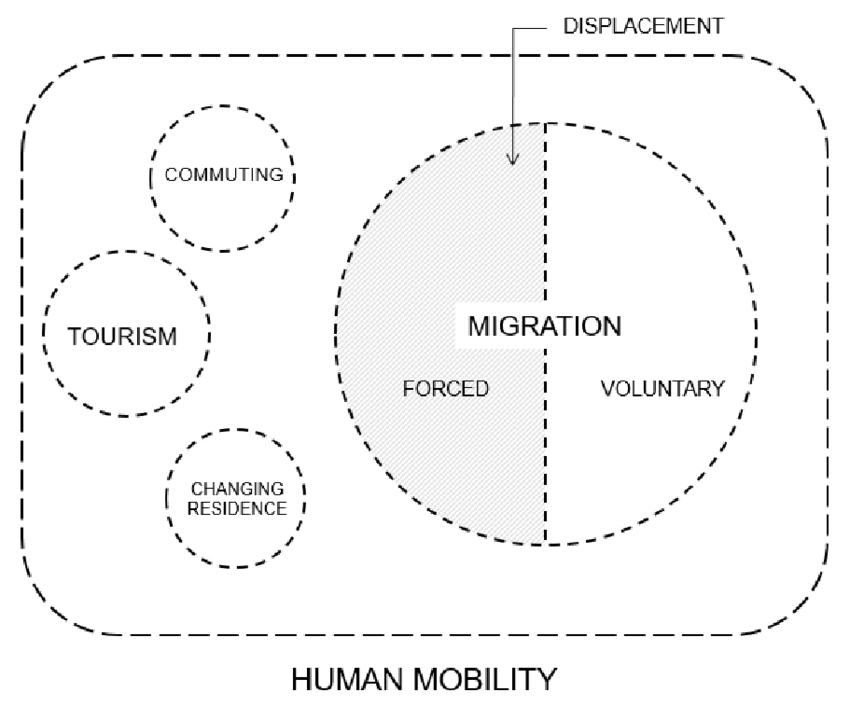 - According to Alden Speare, "displacement is considered to be involuntary, when a person is physically transported, and has no opportunity to escape from the conditions which are responsible to displace him."