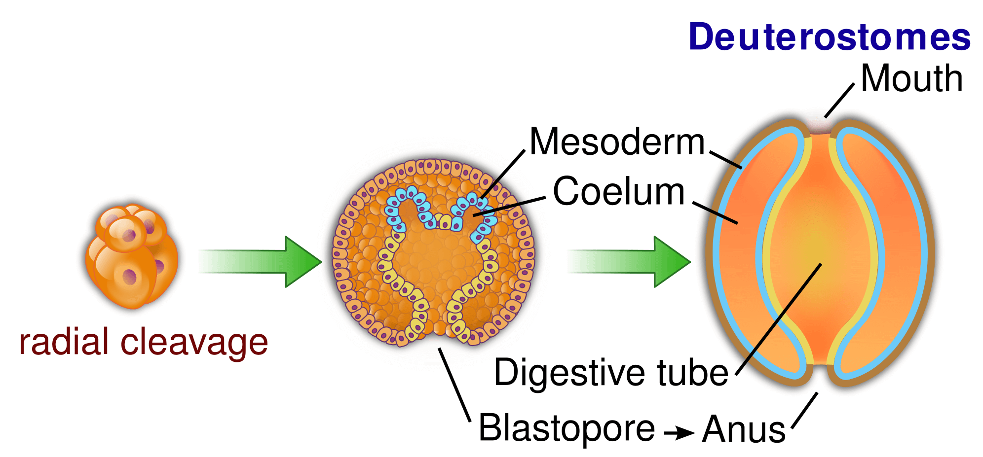 - Triploblastic Development: Deuterostomes undergo triploblastic development, which means their embryos have three germ layers - the ectoderm, mesoderm, and endoderm.