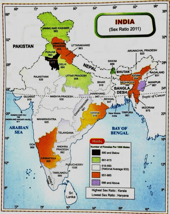 - Sex Ratio at Birth – 882 (2002-04) Girls to 1000 boys at birth