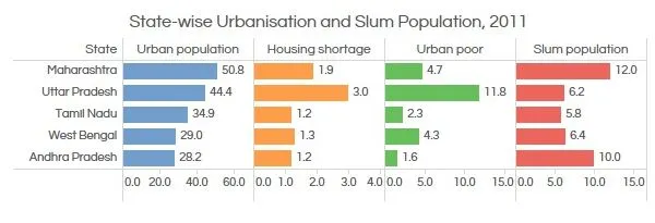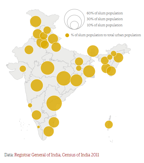- Due to poor urban governance, paucity of resources, widespread corruption, unplanned urban infrastructure, etc., slums spread but do not develop.