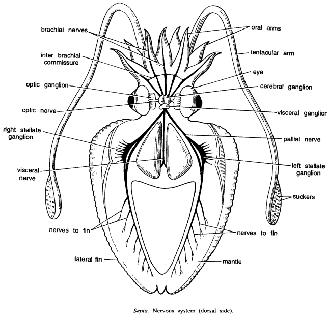 • Hemocyanin, a copper-based respiratory pigment, is present in Sepia’s blood.